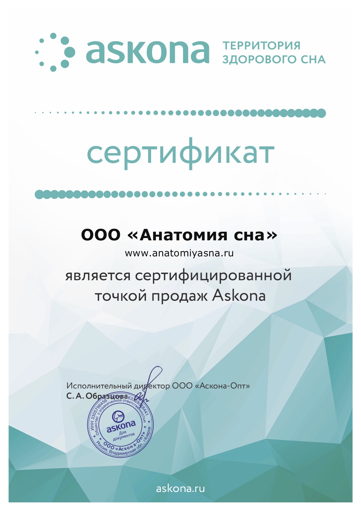 «Анатомия Сна» – передовая российская компания, специализирующаяся на продаже мебели, матрасов, текстиля и других товаров для дома. Ассортимент представлен продукцией высокого качества от ведущих российских и зарубежных производителей. Товары, изготовленные в соответствии с европейскими стандартами качества и предпочтениями покупателей, будут радовать своих обладателей на протяжении длительного времени.