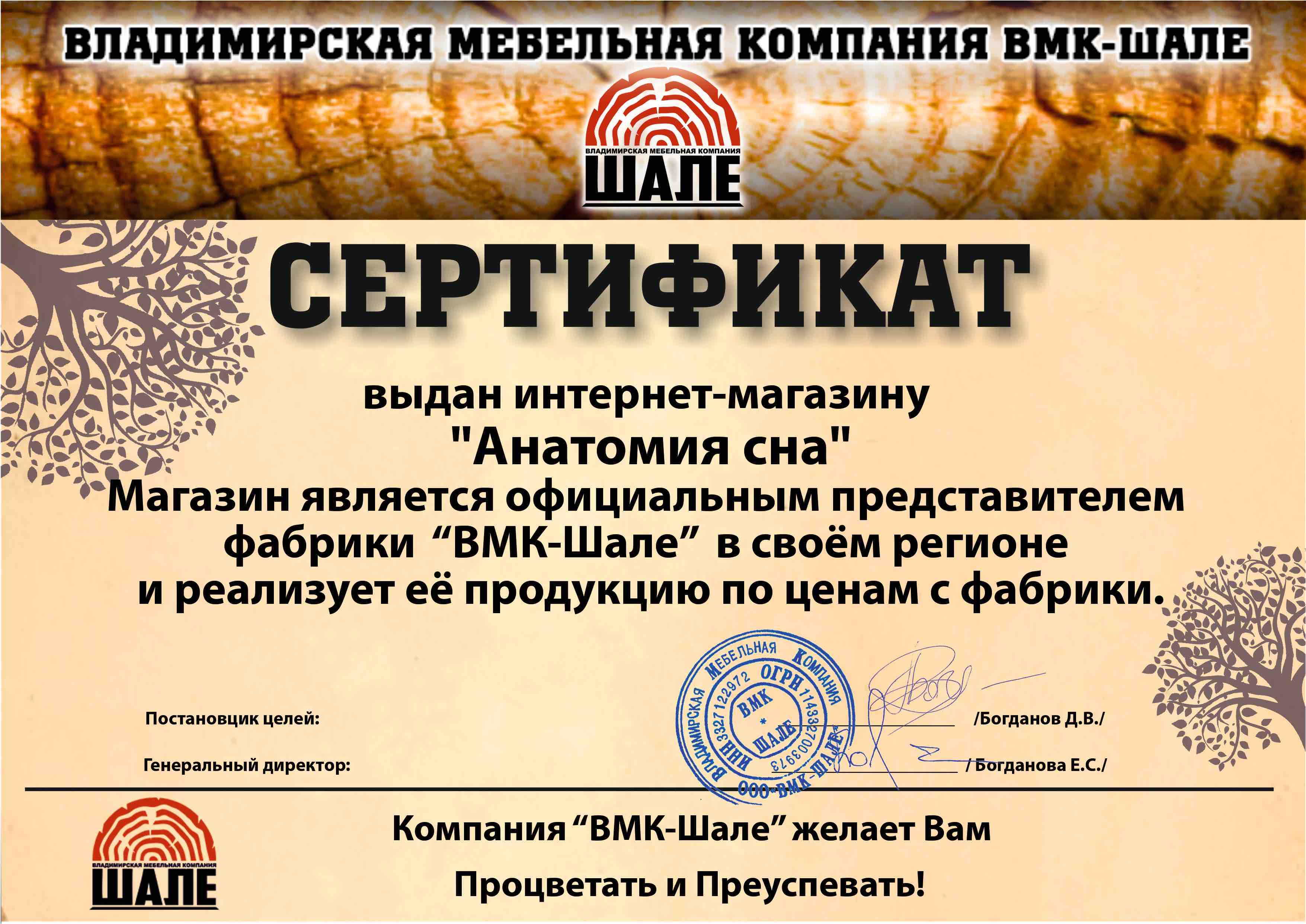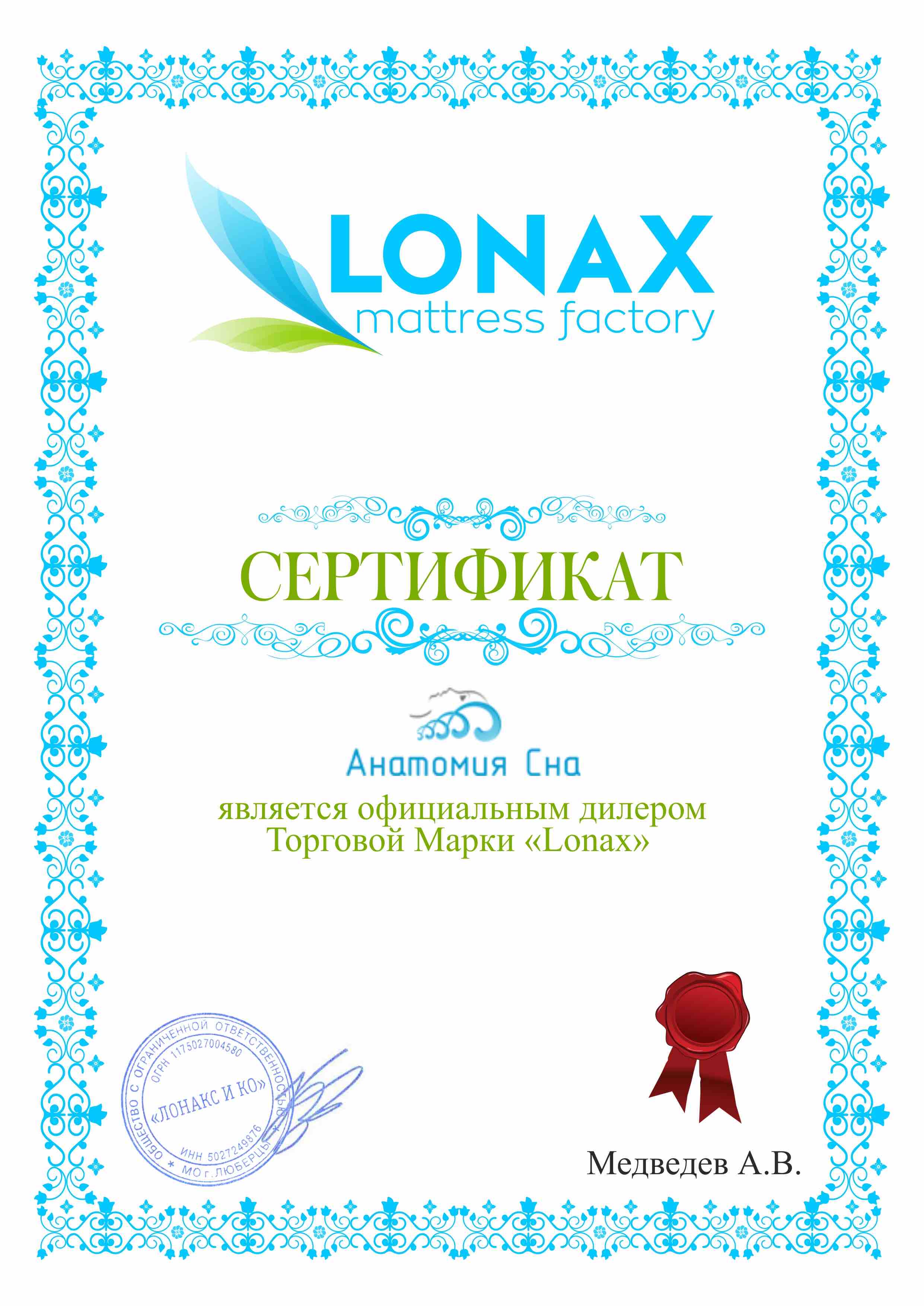 Сертификаты официального дилера