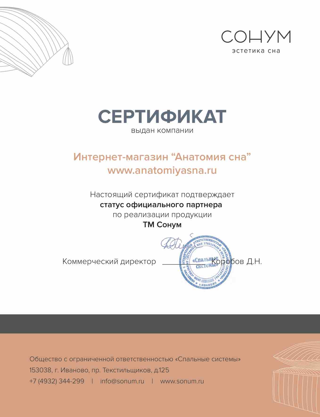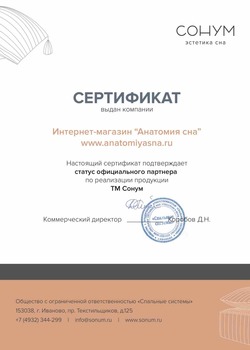 «Анатомия сна» – европейское качество, доступное сегодня каждому! На протяжении 9 лет мы обслуживаем покупателей по всей России. За этот период мы смогли завоевать доверие на отечественном рынке. Многолетний опыт, слаженная работа команды компании, безупречная репутация, множество положительных отзывов от новых и постоянных клиентов, позволяют нам сегодня предложить покупателям наилучшие условия обслуживания, включая разумные цены и развитую логистику. Также мы открыты для сотрудничества с оптовыми заказчиками и производителями.